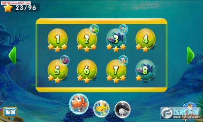 4、玩家不断吃掉弱小的鱼,消灭强大的敌人。