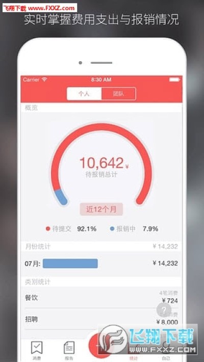 掌握公司分类支出,定制多种统计图表,迅速定位每笔消费