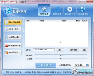 视频转换还支持不同视频文件和音频文件的混合合成转换,切割转换、合并转换等。允许为各导出格式选择屏幕缩放方法,并支持批量转换处理,甚至还可以允许您在最终视频的具体位置叠加自己半透明的个性文字、图片(水印)或叠加滚动字幕、视频相框等视频效果!
