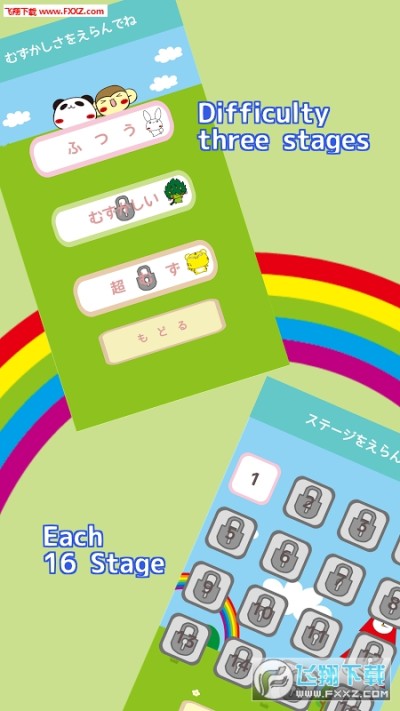 本作是以电视中人气角色“熊猫胖嘟嘟”的公认角色,熊猫胖嘟嘟是用跳跃乘上云或者木材,达到终点。准备了普通、难、超难3个难易度。