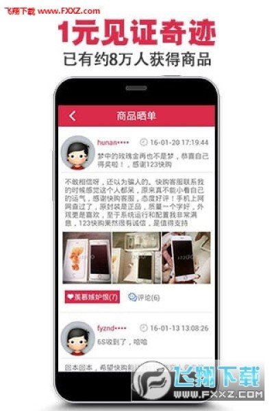 123快购网客户端是一个一元购物平台,用户朋友在这里只需花费一元钱就有可能买到非常超值的商品,这里每天都有大量的顾客都到这里来参与夺宝,感兴趣的朋友快加入进来吧!