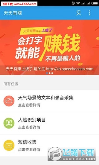 天天有赚专注众包在线兼职,海量兼职任务任君挑选。这里无需坐班,无需培训,只需一部能上网的手机便可以轻松搞定。界面简约,操作方便,动动手指即可日赚数金,支持提现。目前已有兼职任务包括短信收集(垃圾短信换钱利器)、人脸标注(脸盲症福音)等等。下载应用,即刻启程淘金之旅!