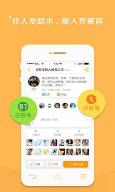 4.轻松赚钱:个人发布专业技能,出售或分享,就能赚钱,APP提供交易与保障体系;