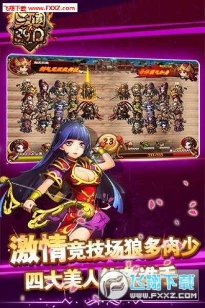 真三国3.9D是正统的真三魔兽策略+卡牌手游,真三所有经典人物列传玩法,霸主经典玩法、一个城池一个城池的收复,最终统一全国。Q萌的战斗外观,25V25最多可上阵50个武将同屏战斗,每天开的竞技场,随时都可以第一时间更新自己的排名,领取每天的奖励,最简单的战斗操作,最简单的布阵玩法,随意摆放适合自己战队的阵容,立即有最爆表的数值体验。