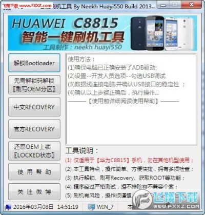 华为C8815智能刷机工具,一款专为华为C8815手机打造的刷机工具,主要可帮助用户解锁华为C8815智能手机的Bootloader以及刷入中文Recover,有需要的朋友可以下载使用。