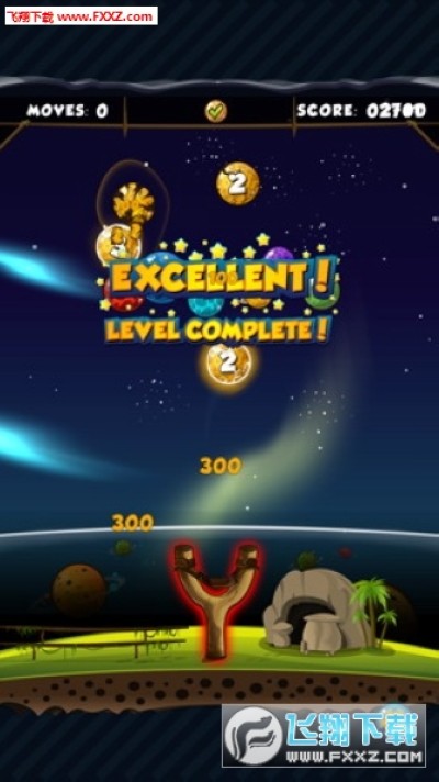 1、通过游戏下方的弹弓来进行发射,调整方向对准相同颜色的月亮。一次撞击可以得到一百分,如果连击的话将会得到额外分数的奖励。