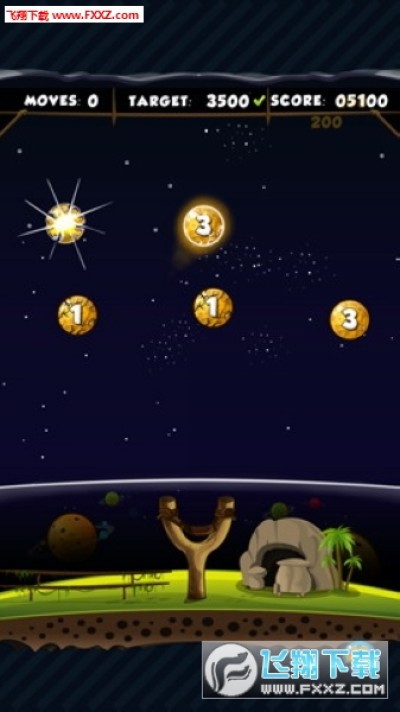 玩家将在苍茫浩瀚的宇宙中,开始弹弓少年的星际破坏之旅,将各个星系中多余的月亮一一清理干净,别说,还真有点后羿射日的味道呢。同目前主流的休闲游戏一样,通过体力值的消耗来限制玩家的游戏时间。游戏初期,玩家将拥有游戏提供的初始体力值(游戏中用桃心表示),每当玩家挑战失败,或是放弃闯关都会扣除玩家相应的体力值。体力值耗尽之后,会在一定的时间之后恢复。