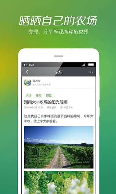 丰收的季节,农场秀起来!自己的农场丰收了,没有人一起分享喜悦?在我会种,都是种植达人、技术大牛、行业老师。通过农场秀,你可以把自己的农场秀出来,与大家一起分享丰收的快乐!