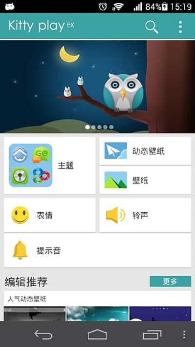 KittyPlay,美化中心ex,go团队的作品,一款手机上的桌面美化应用,可用于下载各种精美的壁纸、主题等,有爱自取。