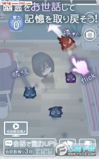 本作是一款照顾失去记忆的幽灵男友,一边要夺回记忆一边加深关系加入恋爱模拟要素的放置育成游戏。在房间净化积满的妖怪,和幽灵男友进行对话开展故事。幽灵男友的心情不好的时候存在感会变小,所以需要对话来维持他的心情,准备了多个结局。玩家根据选项会改变幽灵的过去·性格·容貌,可以看到感动的最后。