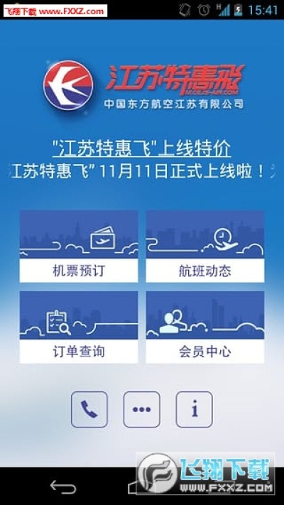 江苏特惠飞是东航官方推出的一个手机客户端,用户朋友可以通过它来直接查询航班动态,同时还可以在这里在线预订和购买飞机票,能为大家的出行带来不少的方便,有需要的朋友可以在这里免费下载使用!