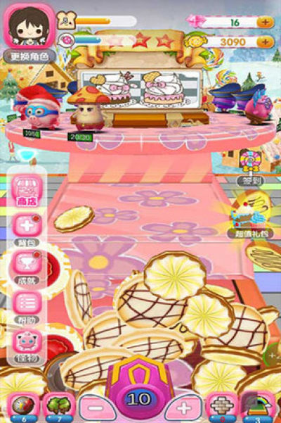 1、在游戏内对主角人物进行升级,可解锁更多萌萌哒小怪兽,不同怪兽会落下不同的糖果数,有些怪兽还会掉落收藏品或者道具饼干,击落他们,守护我们自己的村庄吧!