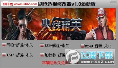 火线精英天蝎刷枪透视修改器,免费的火线精英刷枪辅助,主要可刷取气锤辉煌、AK48辉煌、RPK辉煌等稀有武器,喜欢玩火线精英的朋友可以下载使用。
