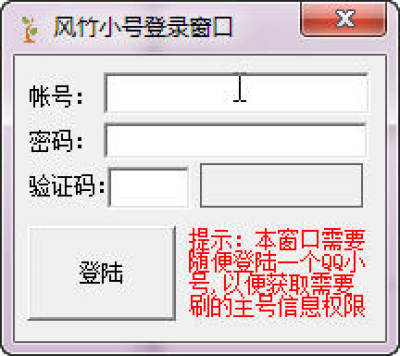 下载软件,解压进行安装,安装成功后进入登录界面,先随便登录一个QQ小号,以便获取需要刷的主号信息权限;