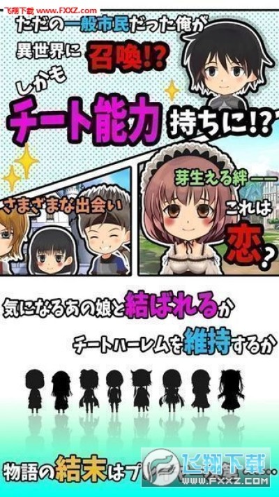 本作能使用作弊能力的后宫组成的“作弊后宫”为内容的和clicker进行恋爱的模拟游戏。游戏中将要和10个人进行恋爱养成!共游56个结局你能全部达成么?
