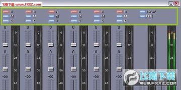 下面这个区域就是轨道音量的控制很简单 前面几个是效果轨道的控制.后面2个分别是监听音量也就是控制自己耳机听到的大小,.后面是输出或录音音量的控制