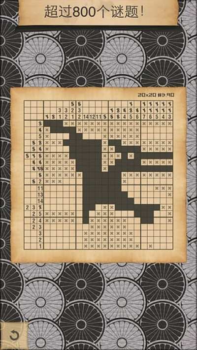 数字代表着所在列或行应该连续涂成灰色格子的数量,如果一行/列有多个数字,则代表这些连续的灰色格子之间要用空白格隔开。你将通过在字谜游戏的格子中填字发现一个隐藏的图片。大量的谜题,保证不会让你感到无聊!