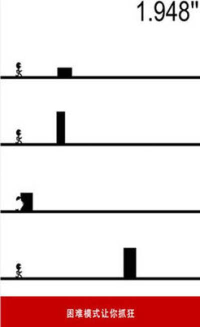一个都不能死游戏中的“炼狱模式”你有木有超过10秒?游戏中,玩家要同时控制多个火柴人在不同的线条上奔跑,并且还得躲避重重障碍,不能死掉任何一个火柴人,尽可能的跑得更远,最多可控制四个火柴人跑酷。看似简单的一款游戏,实则非常考验玩家的手力和脑力,喜欢挑战的你不要错过哦!