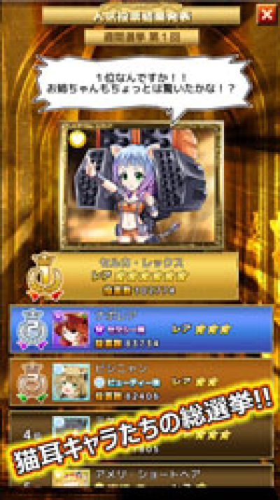 在游戏内每个月,会举办人气hot cat的竞赛。如果获胜的后变成新服装,数值大幅提高。另外,游戏内的HOT- Dog酒吧,使用在游戏中获得的硬币和钻石,能阅读《热狗 PRESS》的手机杂志。
