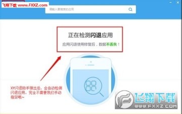 接下来就会自动弹出XY修复闪退助手啦,XY修复闪退助手弹出后会自动检测闪退应用,是不是很方便呢?更难能可贵的是应用闪退修复后,应用的数据不会丢失哦~