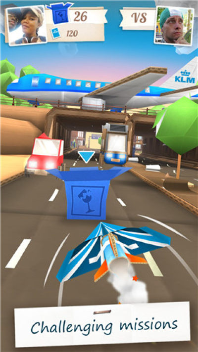 《纸飞机大暴走》是KLM Koninklijke Luchtvaart Maatschappij N.V.开发的一款竞速游戏。在游戏中,玩家需要在这个纸板世界中考验你的飞行和纸飞机导向技巧。小心阿姆斯特丹沿路上的障碍。玩家即可以在单人模式中体验趣味,也能多人模式中挑战你的好友。本作独特的纸板风格的阿姆斯特丹将以其细节来吸引玩家的目光。开发者还加入了一些有趣的元素,例如升降吊桥,电车的铃铛声,还有扔进运河中的生锈越野车。