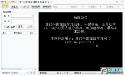 厦门干部在线学习助手加速版是一款适用于厦门干部的在线自动学习和考试软件;软件可加速挂机学习,有效提高学习效率;此外,软件支持全自动学习考试,可实现24小时无人挂机,功能实用,需要的朋友快来下载吧!