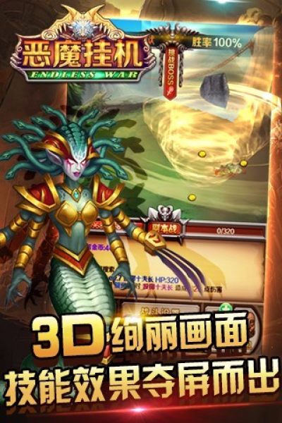 恶魔挂机是一款画面十分炫酷的战斗类RPG手游,游戏带有3d的震撼视觉效果,玩法新颖有趣,上百种技能自由搭配,任你挑选!在游戏中,玩家控制主角去完成一系列的挂机战斗任务即可,操作十分简单易上手,喜欢的玩家赶紧下载试试吧!