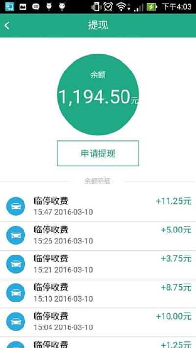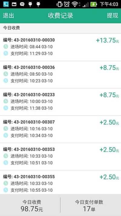 【收入提现】为停车场管理方提供收入统计和收入提现功能。