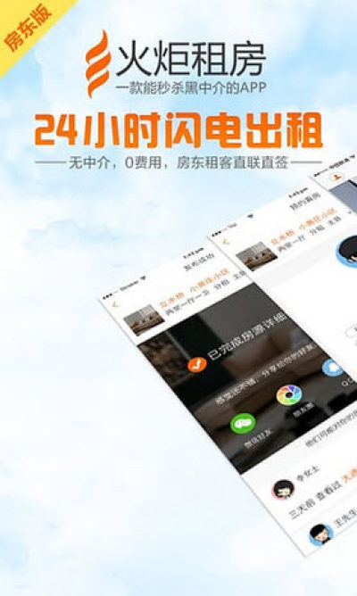 火炬租房(房东版),房东轻松赚房租必备APP!无中介,0费用,房东租客直联直签。