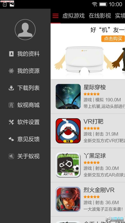 蚁视VR,一款手机上的VR视频应用,完美支持大部分虚拟现实设备,无论是用来播放VR视频还是玩VR游戏都是很不错的。