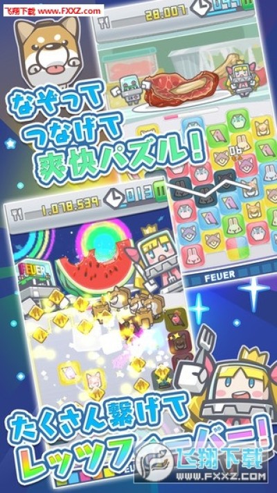 《宇宙海贼波比》是一款由GANBAREL Inc.开发的三消类休闲游戏。游戏的背景设定为一艘载着超级吃货的宇宙飞船正缓缓入侵地球,主角们必须在这群吃货来袭之前把他们一一消灭。另外的玩法很简单,只要把相同颜色种类的三枚方块连接在一起即可进行消除!而部份方块消除后更带有不同的效果,例如加时,增加消除量等等。