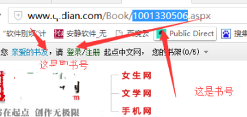 2、在起点中文网上面获取“书号”和“取书号”