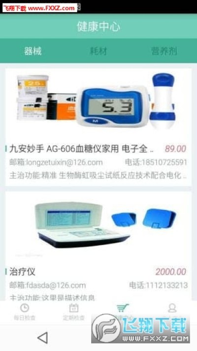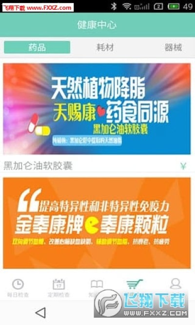 健康中心:分为三大类,药物、耗材与仪器。方便糖友了解糖尿病相关产品的具体参数与规格。
