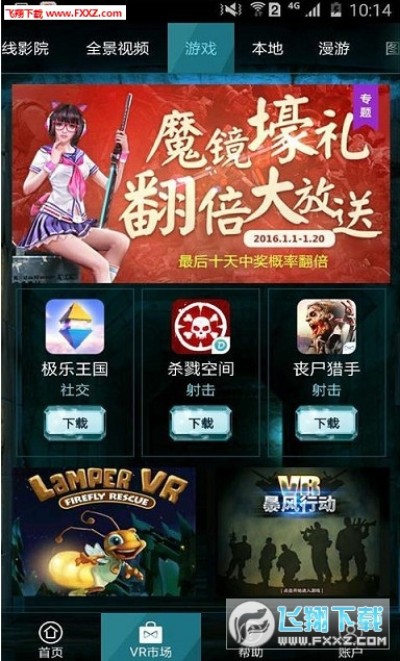 最近一段时间HTC发布了一款强大的VR设备,索尼也不甘示弱发布了PS vr眼镜~可想而知VR以后就是趋势,今天小编给大家分享的一款app就是国内360发布的360奇酷魔镜,提供本地播放、在线视频播放、沉浸式游戏、飞屏等功能。