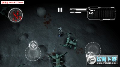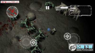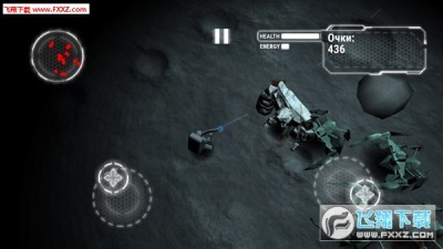 1、玩家在游戏中引导英雄沿无生命的月球表面向前进的敌人射击。