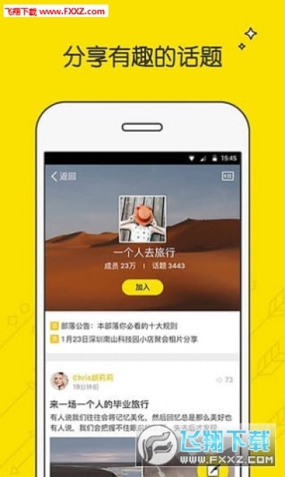 4.兴趣圈:随时查看部落小伙伴们分享的话题,不错过每一个有趣的分享和讨论。