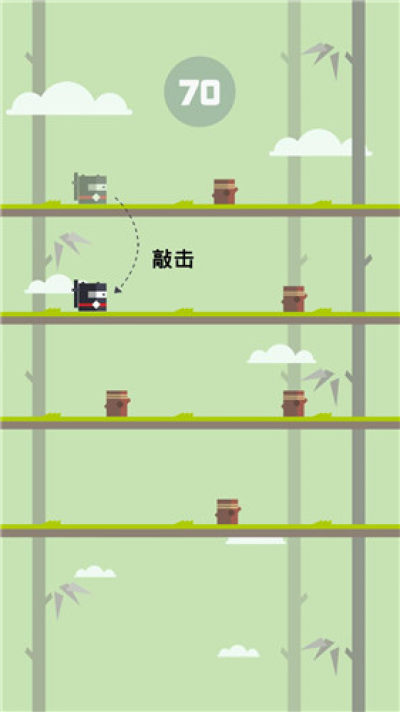 忍者男孩一款画面风格简约的跑酷冒险类游戏。游戏分为上下4条跑道,点击界面忍者会向下跳跃一格,跳到底部会返回最上方。玩法很简单,但却非常考验你的反应和手速。你能否帮助忍者度过难关呢?