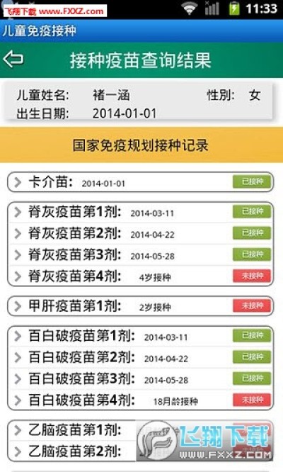 这款儿童疫苗接种app是一个儿童疫苗接种记录查询工具,用户可以通过它来查询孩子每次疫苗的接种情况,以及下次疫苗的接种时间和地点,可以有效地避免遗忘,对孩子的身体健康非常有帮助,家里有小孩的朋友必备哟!