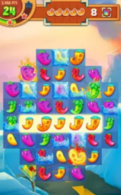 游戏玩法十分简单,玩家可以通过相邻互换的方式来匹配三个或以上相同颜色的辣椒,让辣椒慢慢成长直至爆发超辣的效果,在有限的步数内完成指定任务即可通关。