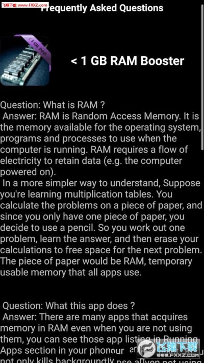 比<1 GB RAM的助推器少即是每一个低内存的手机,即1 GB或500 MB或小于512 MB应该已安装的应用程序。这RAM的助推器通过你的Android设备和清理被其他应用程序所占用的系统内存,提高您的手机或平板电脑的性能,及提高了电池的使用寿命可达20%。