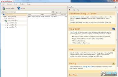 小编删除文件习惯性shift+del,有时候会误删除重要的文件,怎么恢复呢?硬盘修复恢复数据工具Active Disk Editor可以很好的帮助大家, Disk Editor可以备份和恢复你的硬盘数据,检查和编辑你的硬盘扇区,监视你的硬盘的健康状态并可检查硬盘错误等,帮助用户更好的管理物理盘。