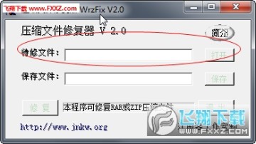 首先按“打开”按钮选择要修复的压缩文件,再按“保存”按钮选择保存修复后文件的文件夹,最后按“修复”按钮即可。修复后的文件名前加有短横“_”。