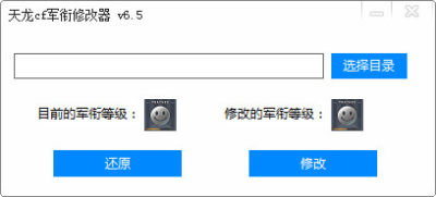 天龙CF军衔修改器是2016最新版的CF军衔修改器,此款软件专门为cf游戏玩家量身订做,能够帮助用户轻松修改游戏军衔。软件方便简单,只需要选择游戏安装目录,然后选择任意军衔即可完成修改。