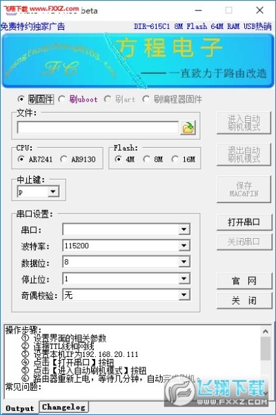 Auto TTL无线路由器救砖工具,用于刷编程器固件,刷ART、刷UBOOT、刷固件。支持的路由CPU类型为AR7241/AR9130,支持4M/8M/16M FLASH。
