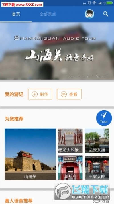 山海关导游是将语音导游、门票信息、旅游攻略、景点美图、旅游足迹等全面集中展现;