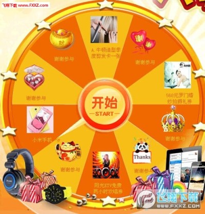 1、使用自创三维图像动画技术,抽奖界面的动画效果表现出色,转盘画面完全由系统根据奖项设置参数自动生成。