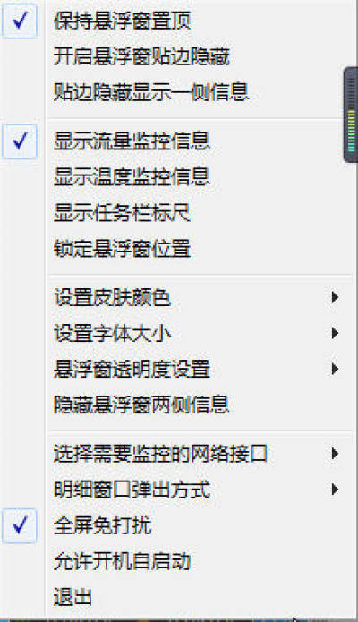可设置皮肤颜色、字体大小、透明度、开机启动等等