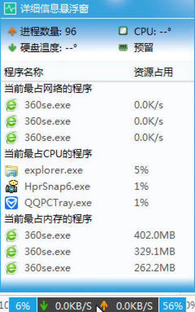 permo系统悬浮窗小工具是一款绿色小巧的桌面悬浮窗口显示工具,可为用户显示当前进程数量、cpu、硬盘温度、网速情况等,功能实用,内存占用小,需要的朋友快来下载体验一下吧!