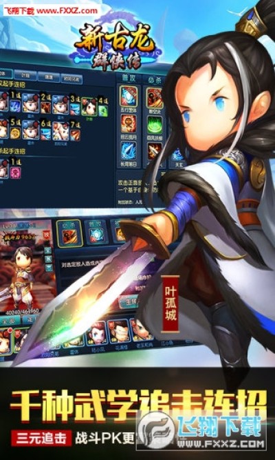 《新古龙群侠传》是由巨人移动发行的一款结合了养成、战斗的MMORPG手机游戏。产品是《古龙武侠小说全集》改编的回合制MMORPG手游。在《新古龙群侠传》中,玩家扮演《大旗英雄传》中的夜帝弟子,进入古龙群侠世界,随着夜帝失踪,敌国扶桑入侵,江湖动荡,面对一个个强敌,玩家与古龙武侠人物结伴同行,最终揭穿一个又一个阴谋诡计,最终挽救整个中原。