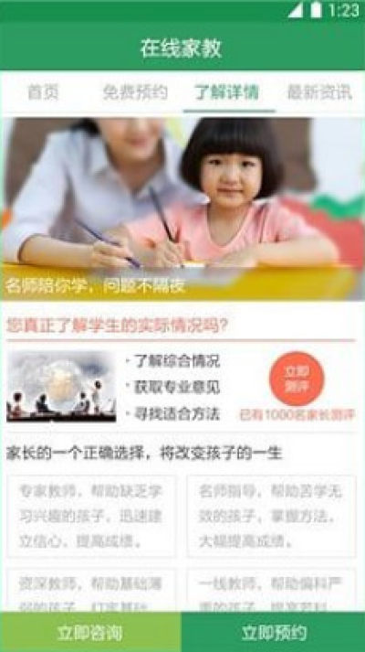 现在的家长都忙着上班,哪有时间教孩子?在线家教可以在线辅助为用户提供一对一的家教服务,帮助孩子进行科学有效的在线教育服务,快速提高学习成绩,学习更轻松。欢迎下载使用!